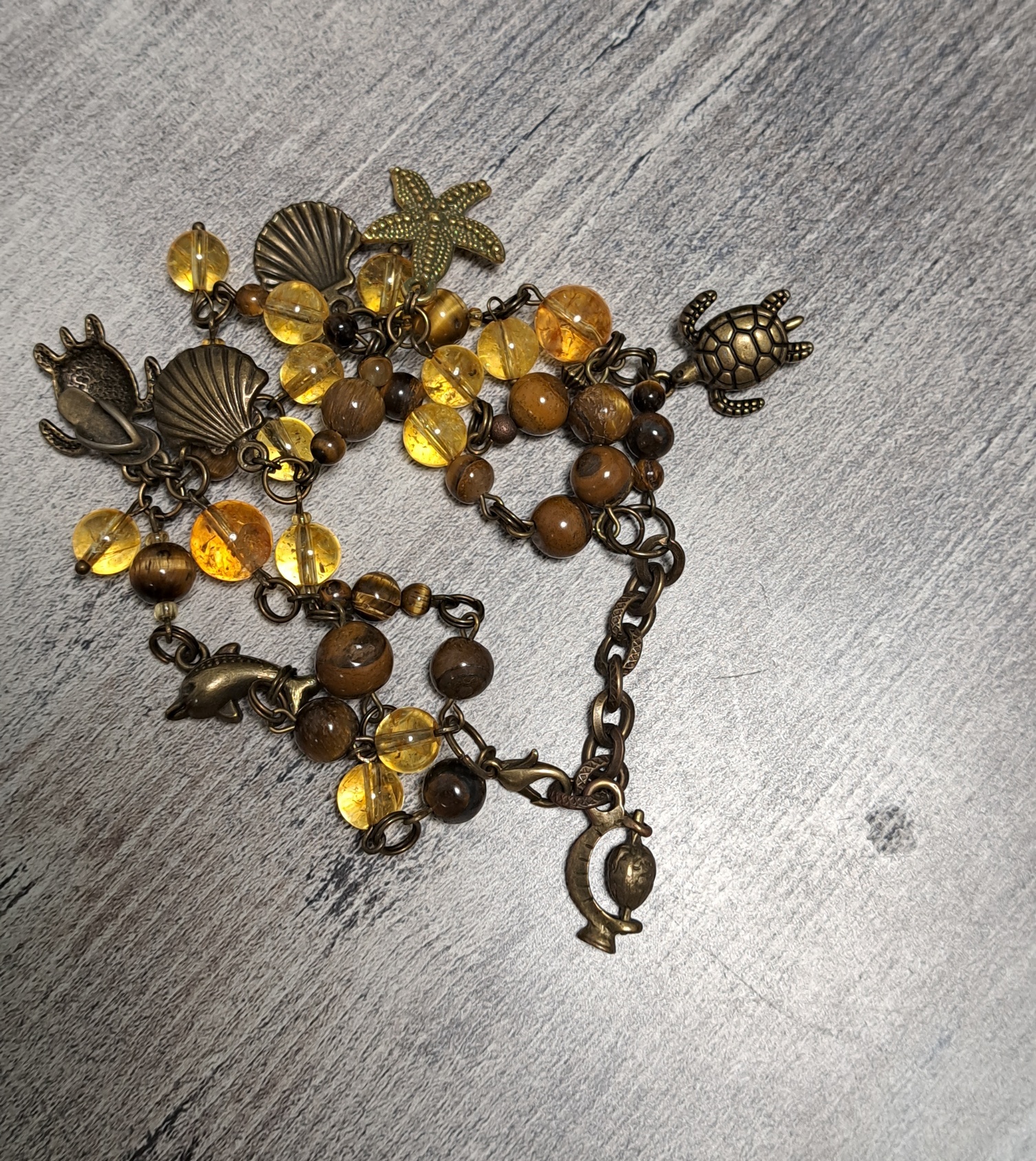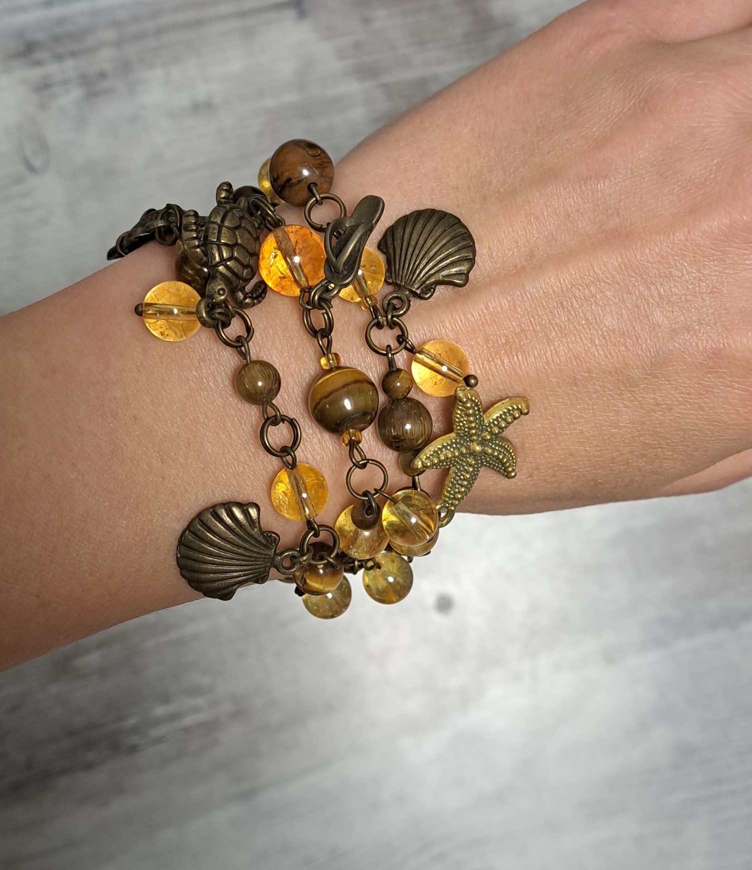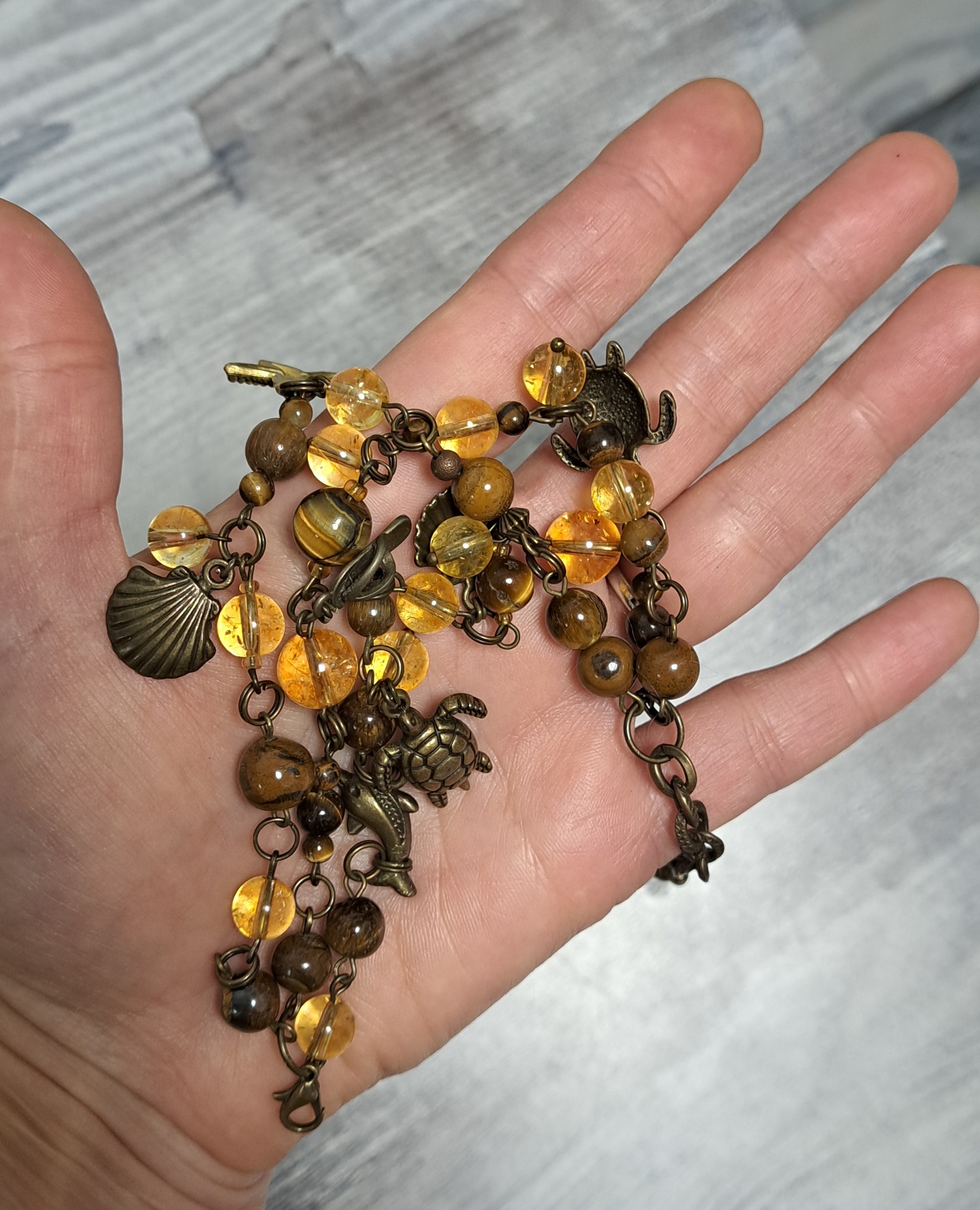тигровый глаз, цитрин, фурнитура бронза