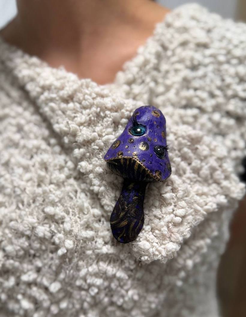 Брошь гриб глазастый (красный, желтый, золотистый)