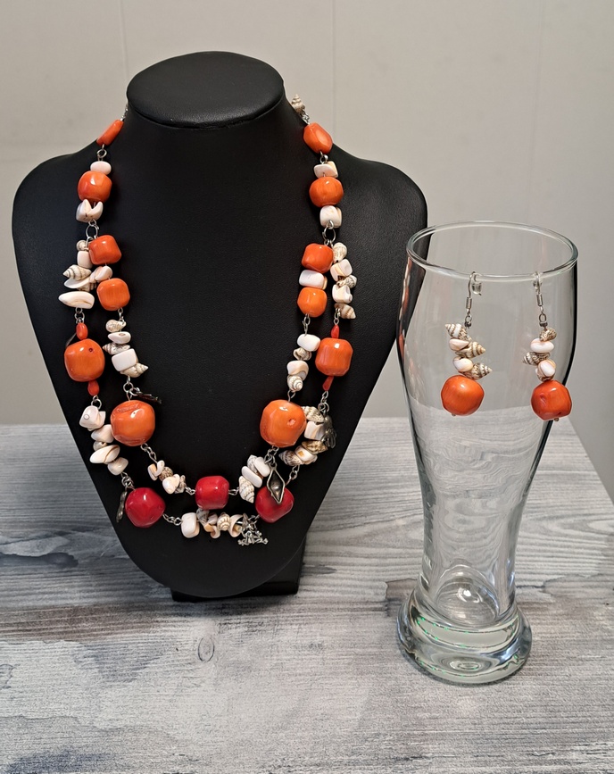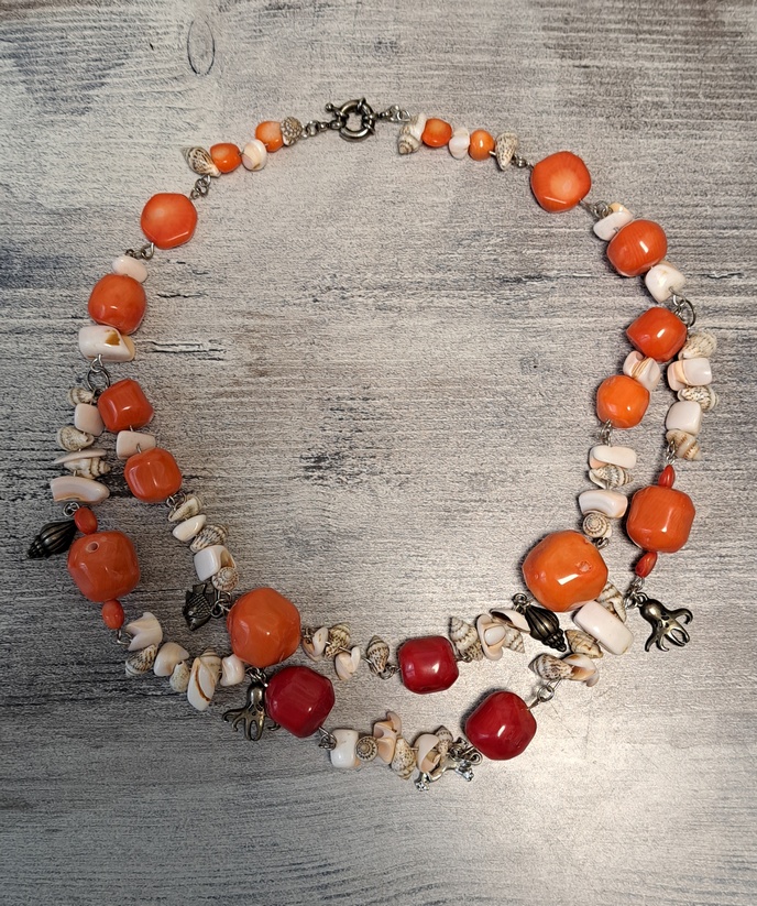 натуральные кораллы и раковины, фурнитура под серебро